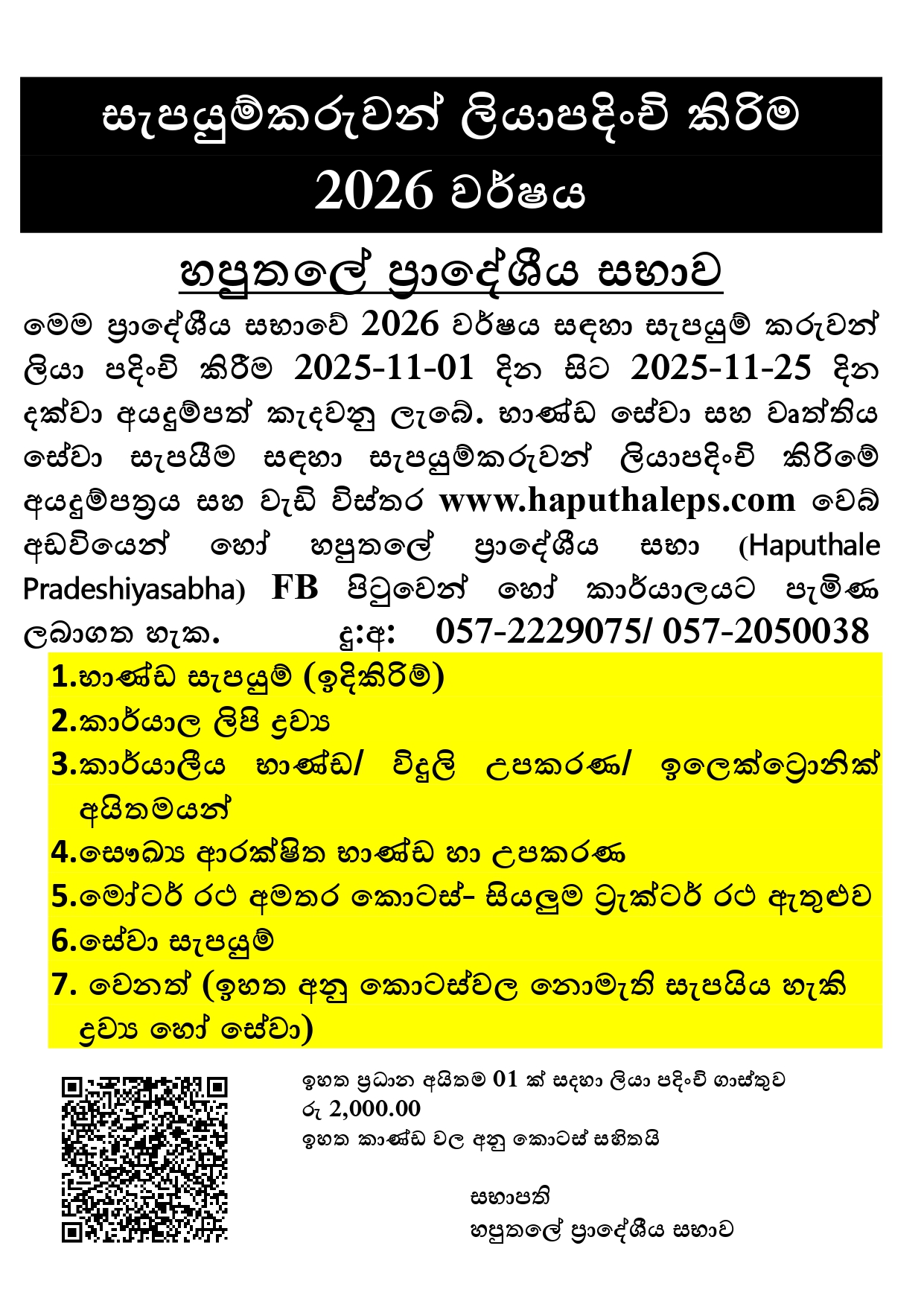 සැපයුම්කරුවන් ලියාපදිංචි කිරීම – 2026 වර්ෂය